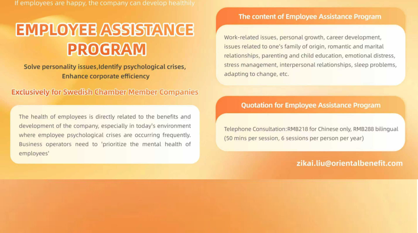 The EAP Program was initially offered in January 2025 and SwedCham China is happy to announce that we will continue to offer the EAP Program benefit to our member companies in 2026.